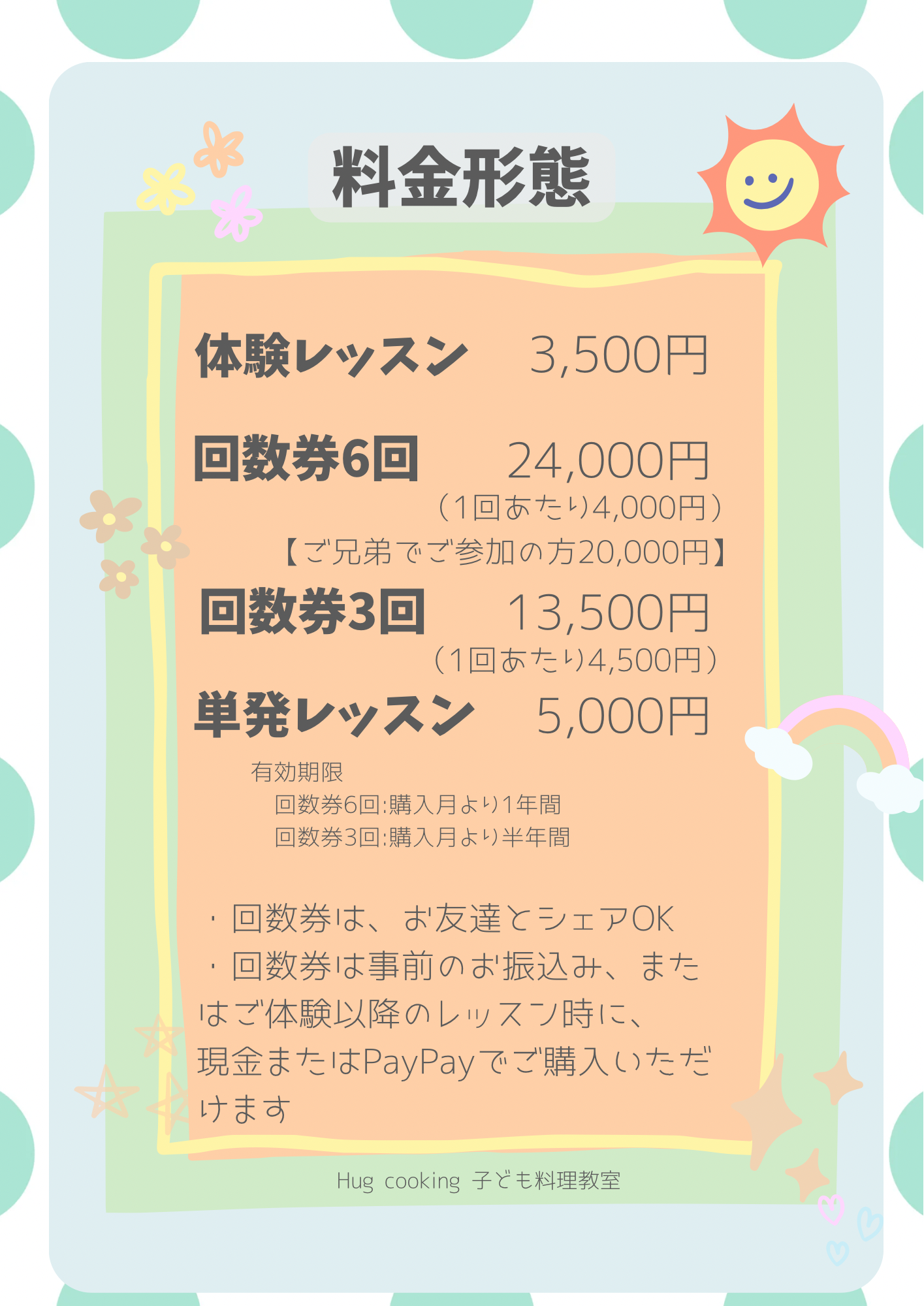 当教室は回数券、単発レッスン制とさせていただいています。